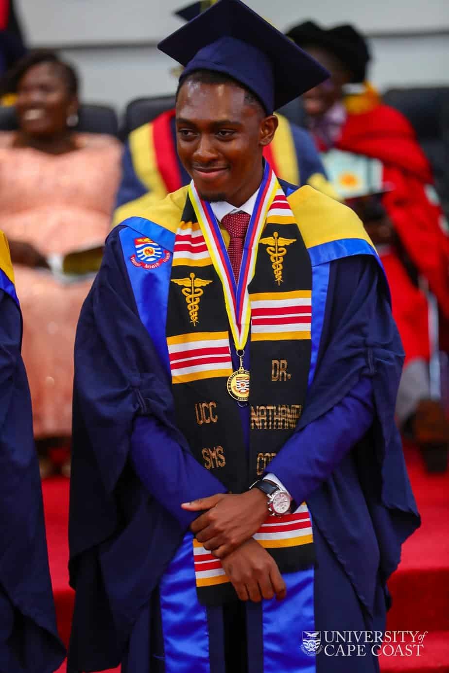 Nathaniel Codjoe, a freshly-graduated medical doctor from the School of Medical Sciences at the University of Cape Coast (UCC), has set a new standard for academic excellence by picking up a total of 16 awards out of 22 at the second session of the 55th Congregation Ceremony held for graduates from the College of Health and Allied Sciences.