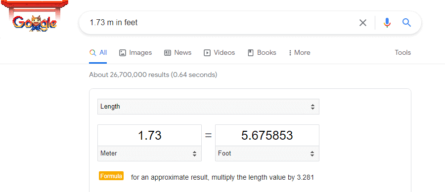 Now go to Google.com and type 1.73cm in feet as shown in the screen below