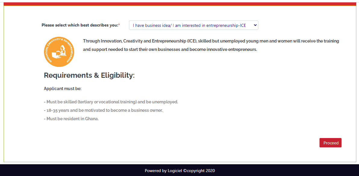 As a NABCO trainee, you automatically fall under the ICE category (I have a business idea/ I am interested in entrepreneurship – ICE)
