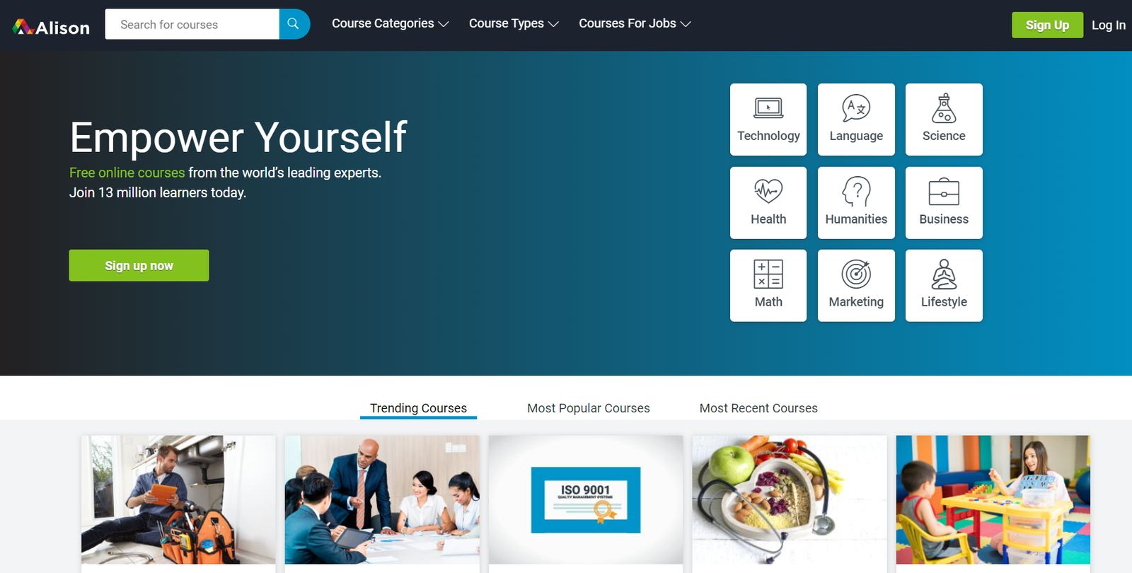 If you’re a regular student at the university, home mom, or nine to five job holder, who wishes to learn the new subject at his/her comfort, you can login to the Alison site and begin to learn the new course. The Alison platform as it stands has over 1000 free online courses that anyone can login to start learning. There is no payment required before you can undertake a course on this website. I could remember my first web development course started from the Alison platform in the year 2015.