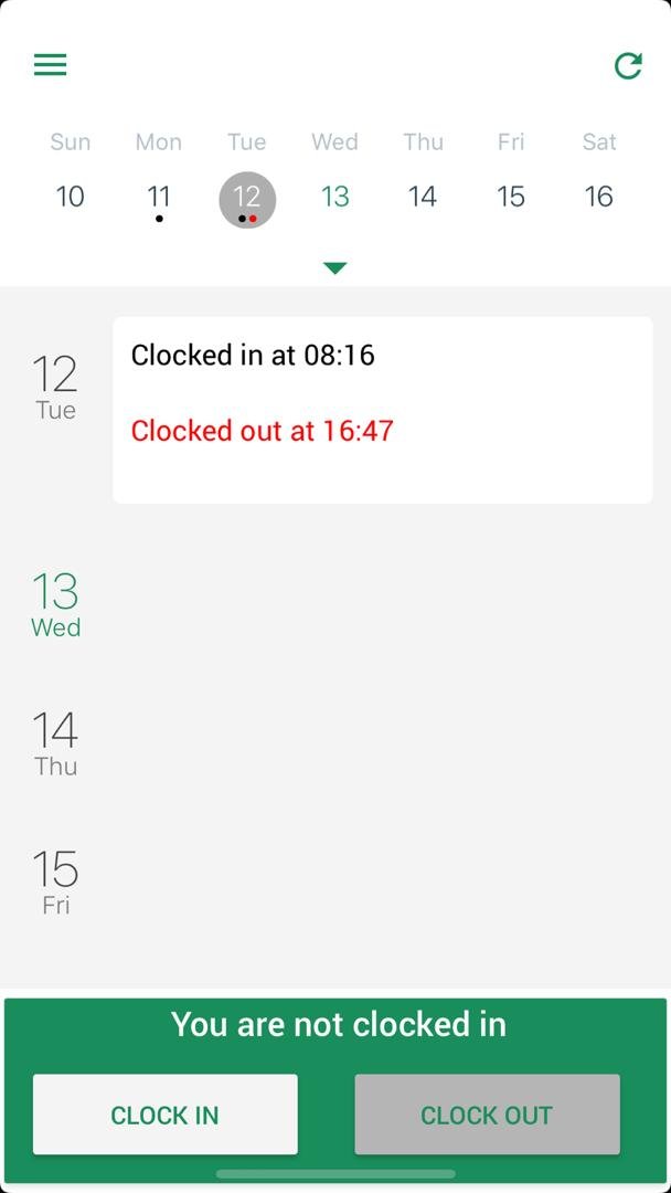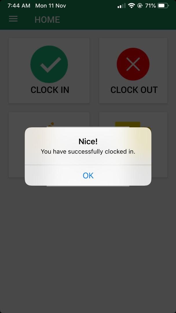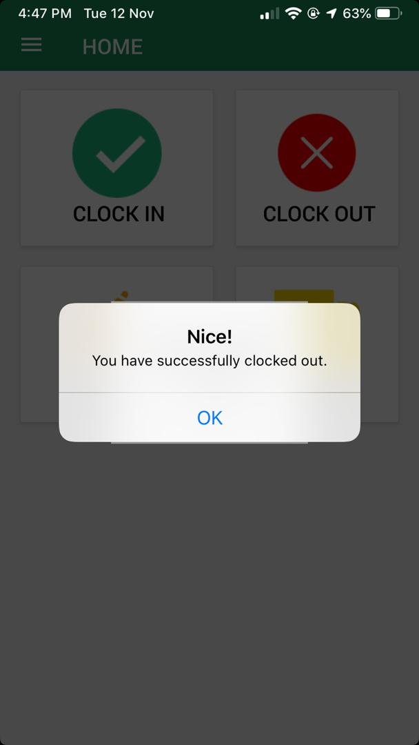Now that you are clocked in, what you need to do is to minimize the app and then continue with your normal activities at the workplace. Once you are ready to go home, you then open the app and now tap on the clock out button to clock out.