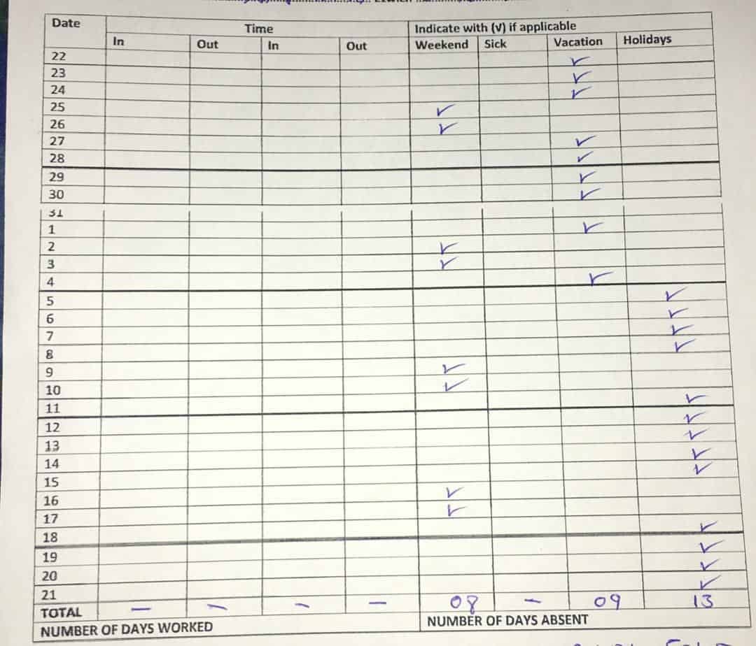 In the end, you will not have to write anything on the ‘TIME IN’ and ‘TIME OUT’ on the timesheet.
