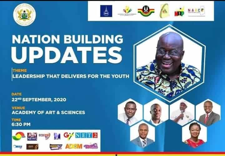 The Update/Address as seen from the flyer with the Inscription “Nationa Building Update” and Theme “Leadership that delivers the youth” was meant to address most issues concerning NABCO, NSS, NYEA, among others.
