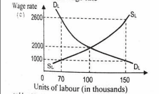 (c) (i) The minimum wage rate will lead to a reduction in labour already employed from 100 thousand to 70 thousand.