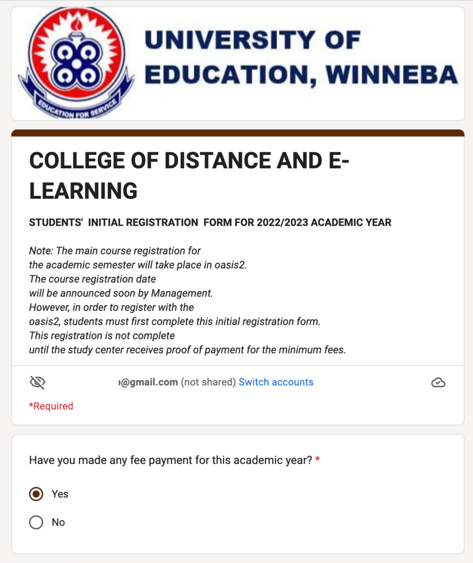 UEW CODeL Students’ Registration Form For 2022/2023: