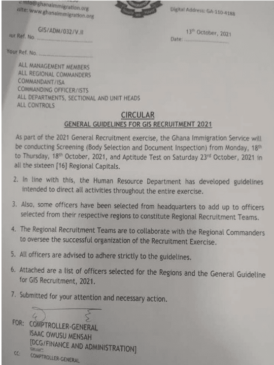- Ghana Immigration Service Aptitude Test Date Out, See the Details Below