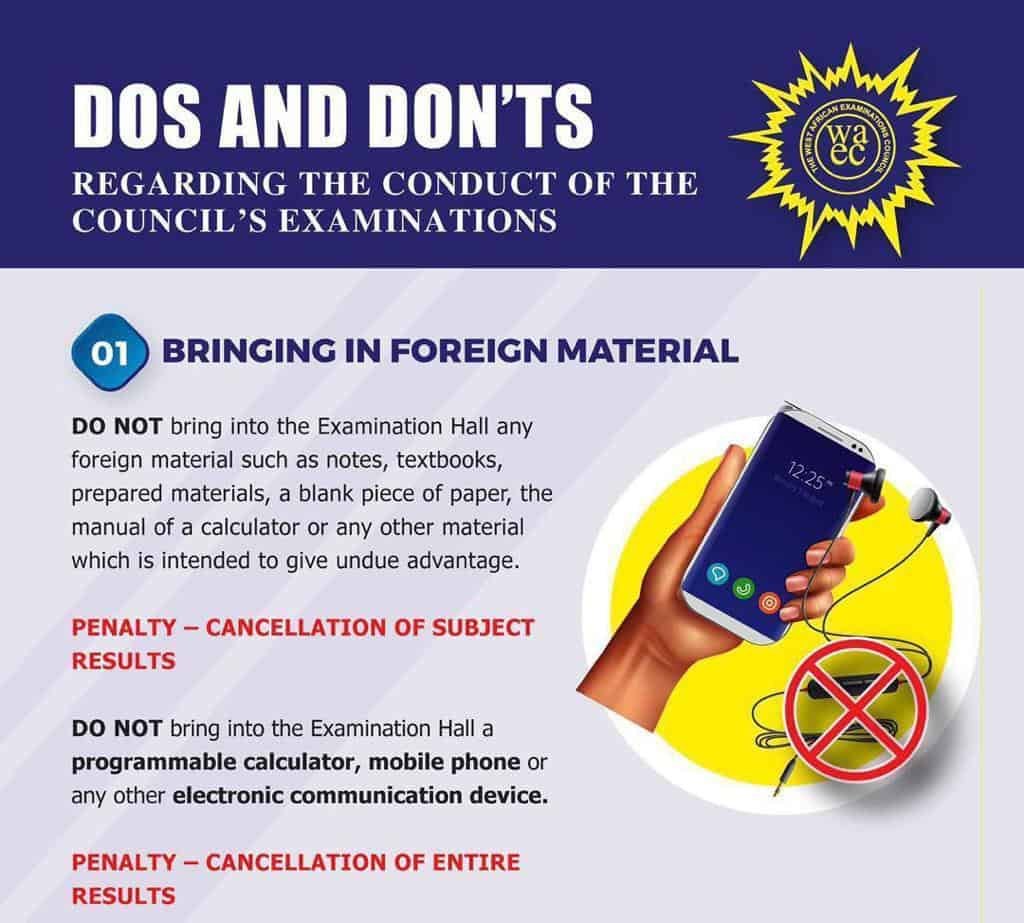 See Below the Infographic for the WAEC 2024 DOS AND DONT with their Penalties.